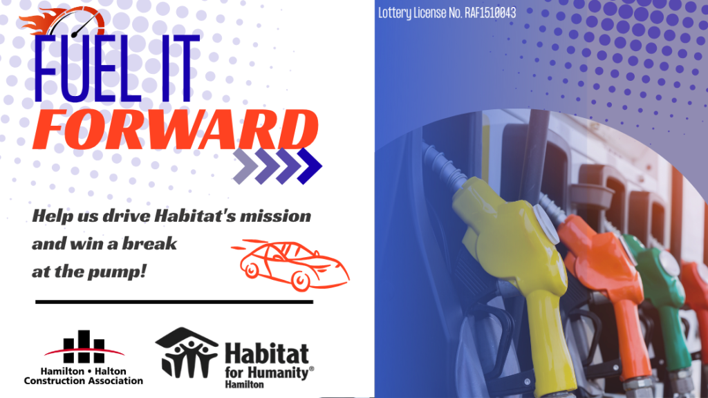 Introducing the Fuel It Forward Raffle, where every ticket purchased helps Habitat for Humanity Hamilton build homes, communities, and hope – and enters you for a chance to win $2,000 in gas gift cards.